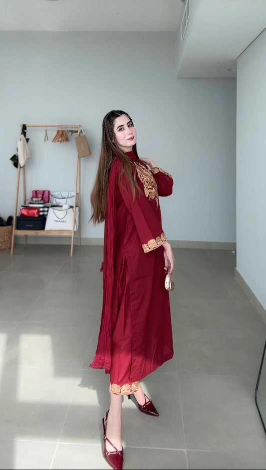 MP015- WINTER Laj wanti 2Pc Embroidered Linen Suite With Fully Embroidered trouser & Patches