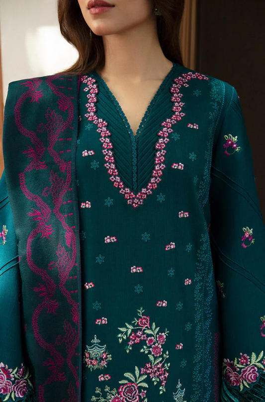 MP522-WINTER 3PC Linen Embroidered suit with Embroidered Shawll