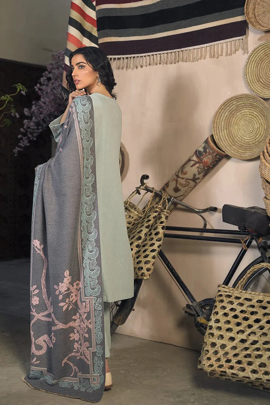 MP823-WINTER 3PC Dhannak Embroidered suit with Printed Shawll
